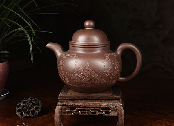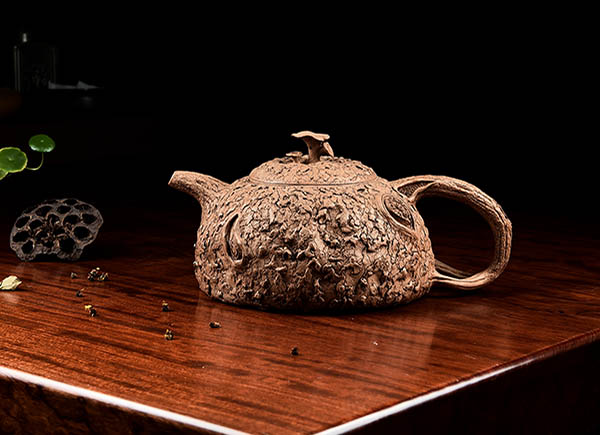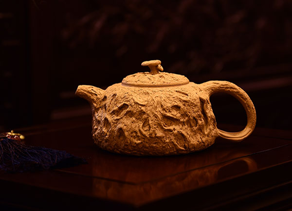 葛岳純父子皆擅長花貨的制作,其中家族代表作九龍至尊壺是由葛超美設(shè)計,其父親葛岳純制作完成,遠看壺型整體氣韻流暢,近看做工精美無暇,是父子合作的經(jīng)典之作,現(xiàn)已注冊外觀專利和終身版權(quán)。后葛超美在其父親傳統(tǒng)技法的基礎(chǔ)上,吸收其藝術(shù)菁華,創(chuàng)造革新,制作出更為精致、富有立體感的九龍至尊壺,九龍盤壺戲珠,浮雕云騰致雨,精致于細發(fā),大氣于天地,寓意天降祥瑞,國泰民安。
